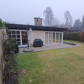 Arbejde: Totalrenovering af eksisterende villa, herunder nyt tag, nye gulve med gulvvarme, nye badeværelser, ny el, ny vvs, malerarbejde samt etablering af tilbygning på 100 kvm